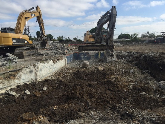 Targus performed field monitoring during excavation activities associated with site redevelopment in general accordance with the procedures outlined in the SMP. Subsurface conditions encountered during excavation included discovery of asbestos-containing transite pipe, a concrete clarifier, sewer piping connected to the clarifier, and an undocumented irrigation well. The transite pipe was removed after preparation of a Procedure 5 and Asbestos Survey. The clarifier was removed after sand inside of the equipment was sampled to characterize the material for off-site disposal. Several soil samples were collected in the excavation after the clarifier and associated sewer pipe were removed. Detected constituents were below applicable regulatory criteria. The undocumented well was decommissioned under a permit from Los Angeles County. As an added precaution related to the underlying petroleum plume, a vapor barrier was installed beneath the management office during construction.